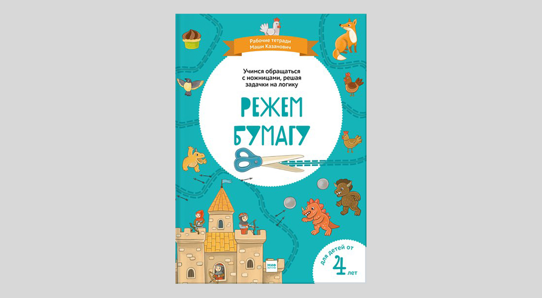 Маша Казанович предлагает любящим родителям совместить удовольствие с пользой. С помощью ножниц так легко помочь сказочным героям! Нужно всего-то разрезать лист так, чтобы предотвратить нежелательную встречу: свиты короля с разбойниками, мышей с хранимой в мешках пшеницей, моли с королевскими мантиями, лакомки медведя с пчёлами, королевского флота с пиратами и бушующими волнами. Конечно же, ребёнок с радостью примерит роль отважного спасителя, а оружием его будут ножницы и логическое мышление. Поскольку подсказки – нарисованные пунктирные линии – содержатся лишь в некоторых заданиях. В остальных же случаях малыш должен сам решить, где пройдёт разделительная линия. Здесь понадобится и внимание, и умение разделять предметы по определённому признаку, и глазомер.